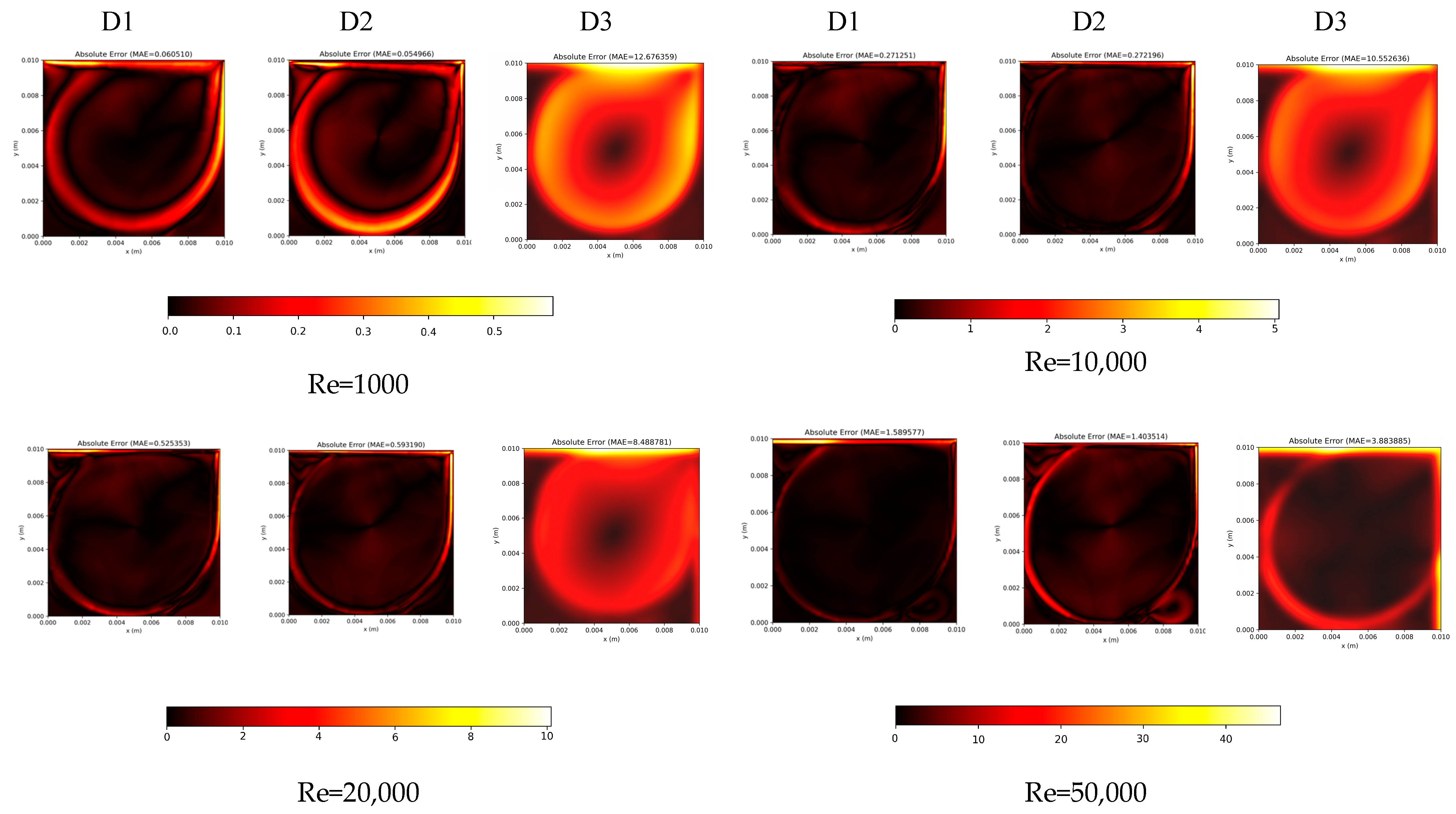 | Re = 1000 | Re = 10,000 | Re = 50,000 | ||