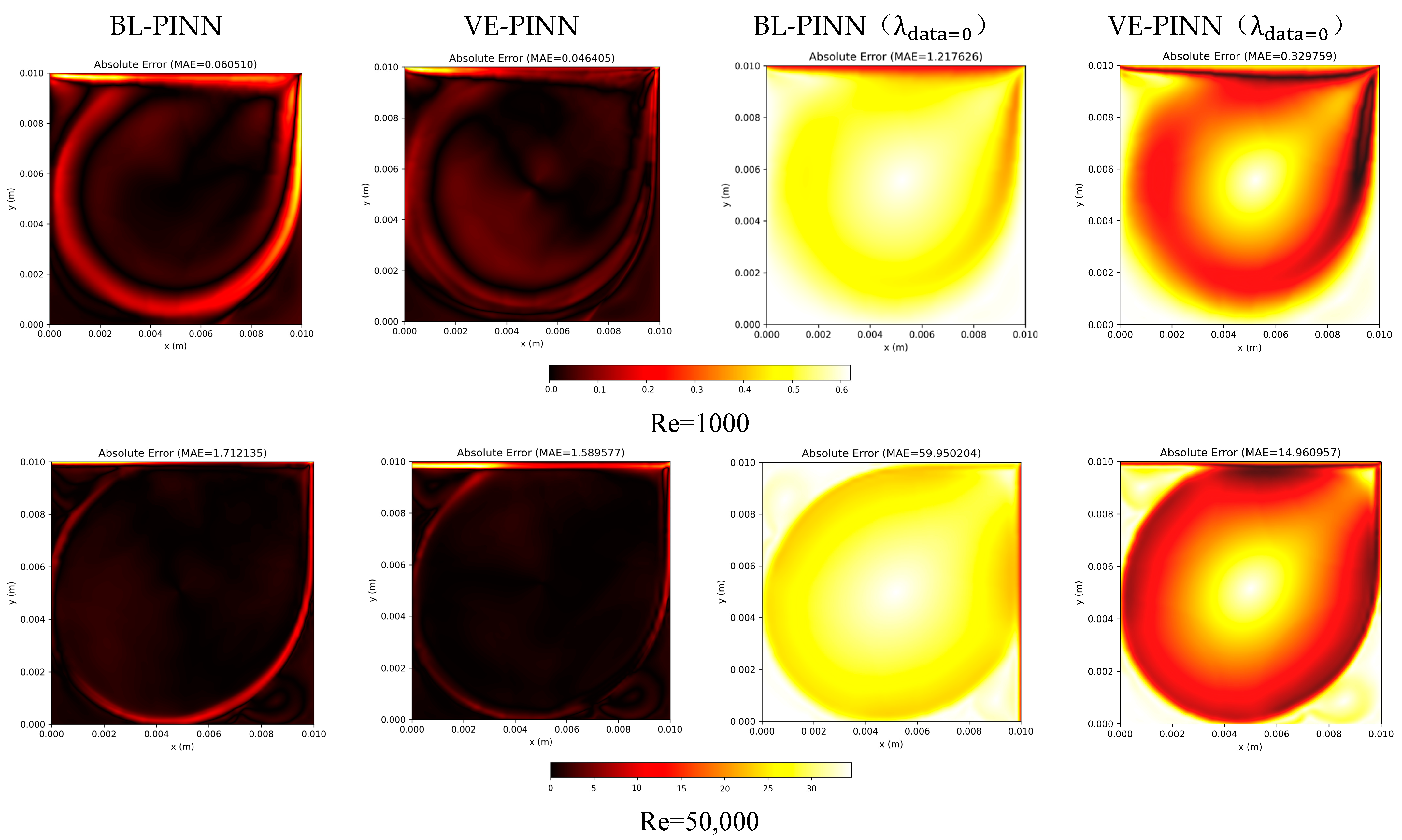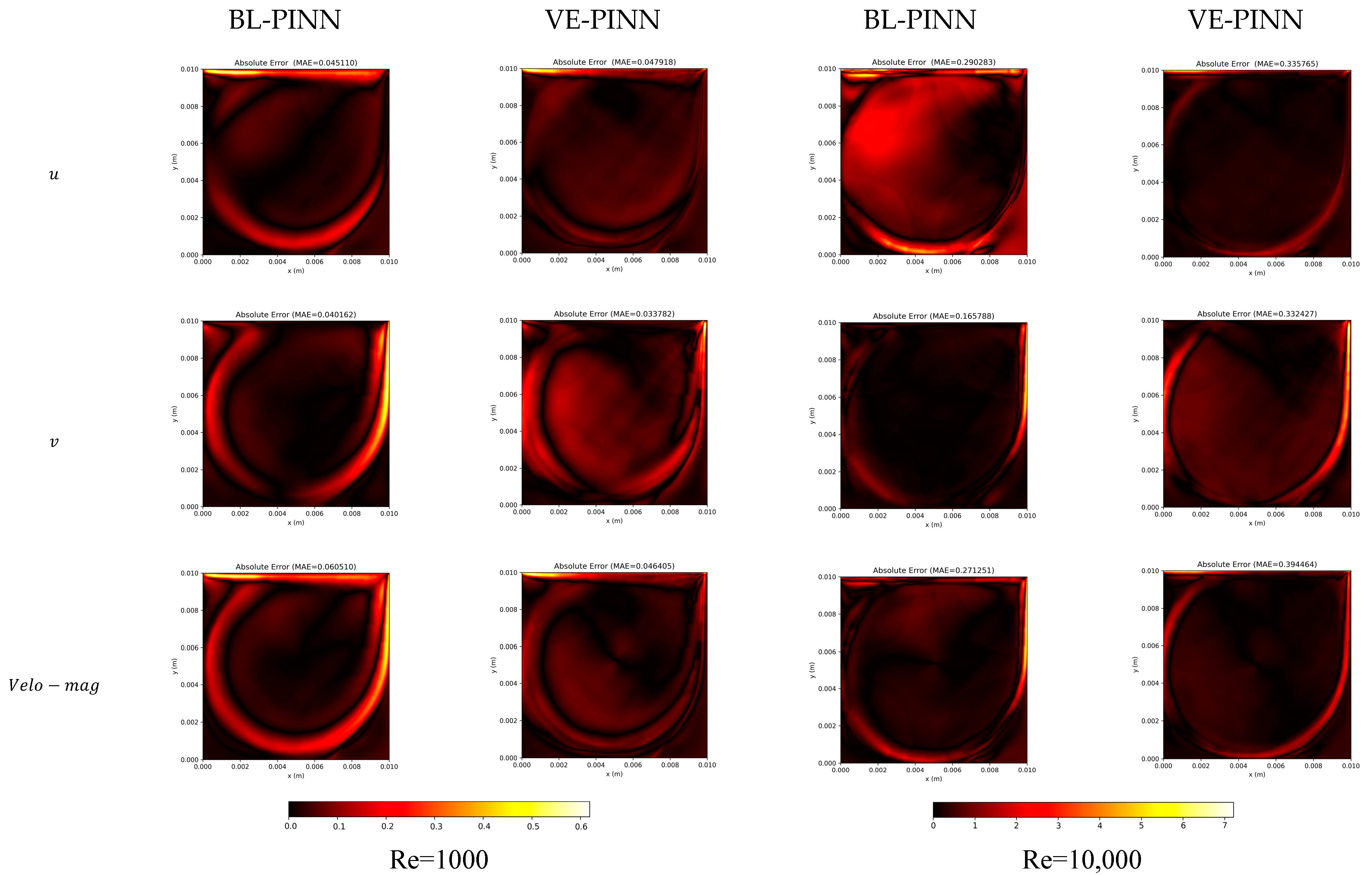| Re | BL-PINN | VE-PINN | BL-PINN () | VE-PINN () |