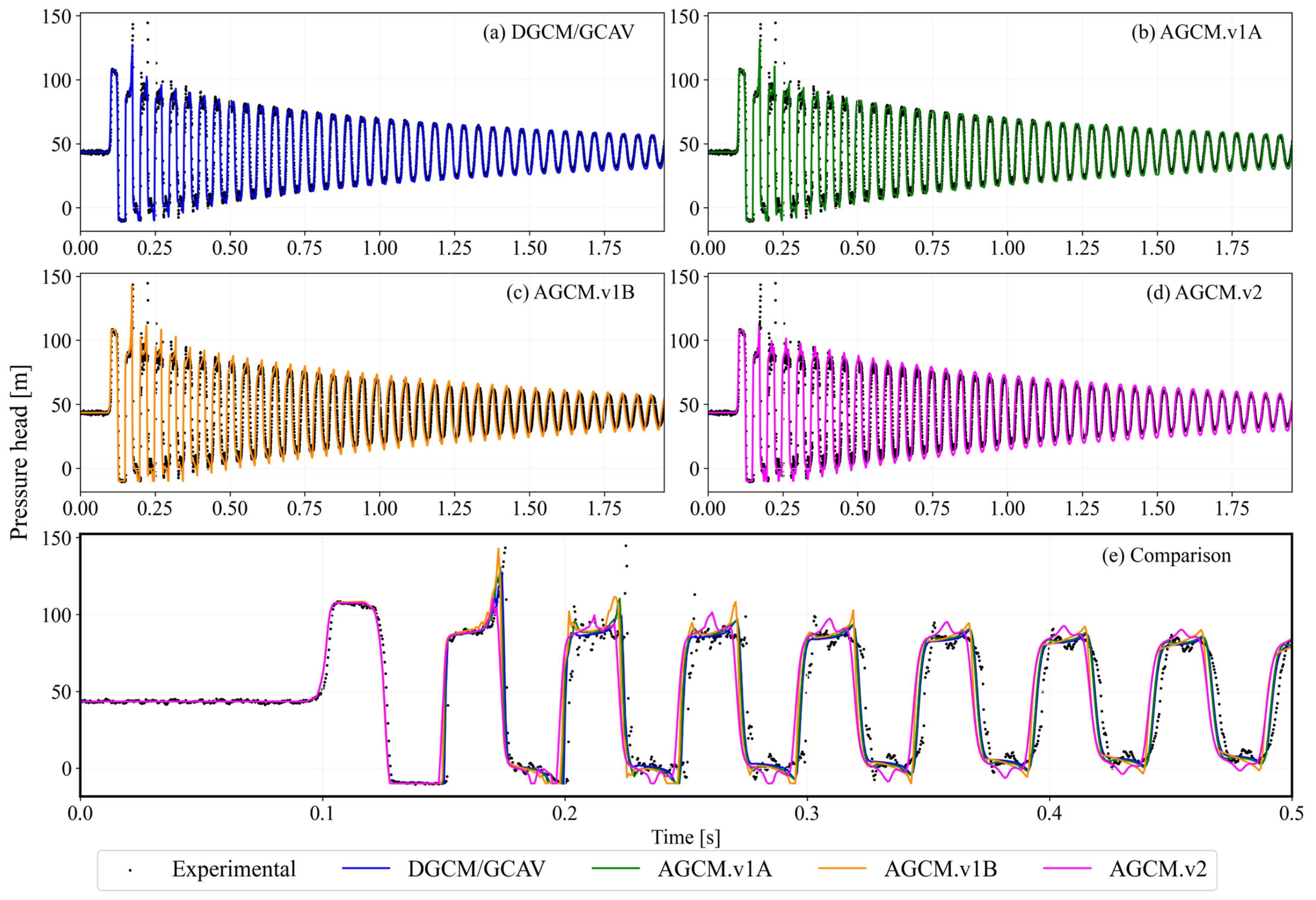 - AGCM.v1A: Adjustable-celerity Gas Cavity Model that integrates the DGCM with variable wave celerity and Vitkovský’s unsteady friction model.
