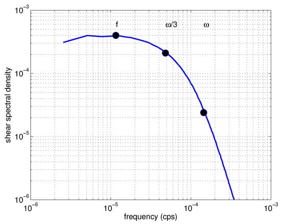 with m s, cph and [m] is equivalent to mode-4 in a m deep (buoyancy scaled) ocean. The one-sided spectrum of vertical shear, equal to with kinetic energy density , asymptotes to [m].