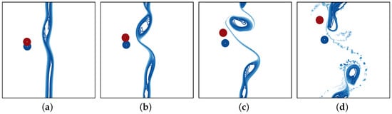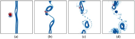 - Legras, B.; Dritschel, D. Vortex stripping and the generation of high vorticity gradients in two-dimensional flows. Appl. Sci. Res. 1993, 51, 445–455. [Google Scholar] [CrossRef]