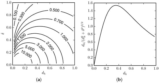 where is the horizontal distance between the point vortices and is the full three-dimensional distance between them. This means that for a given , increasing d decreases the interaction between the vortices, and therefore decreases their translation velocity. However, in the presence of a surface filament, increasing the vertical offset also increases the difference in velocity induced by the filament on the vortices, and consequently increases the horizontal offset . This in turn increases the translation velocity, at least for . The dependence of on and is summarised in Figure 7.