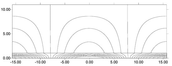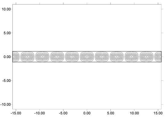 On the vertical boundaries of the area, the conditions of periodicity were imposed. Such conditions allow not only longwave solutions but also finite-wavelength ones, with the wavelength equal to , where is an integer value.