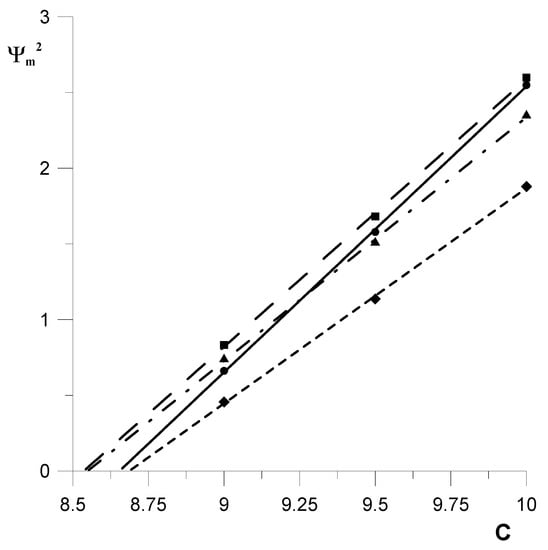As follows from the results of the calculations obtained in the framework of linear theory, critical values of the Grashof number for disturbances with are close to those for longwave disturbances with , although they are a little bit higher.