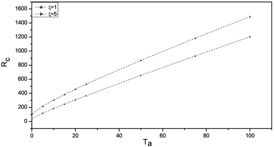 . This means that the effect of increasing the anisotropy parameter is to delay the onset of convection in a fluid layer. Again, we observe that increasing the Taylor number