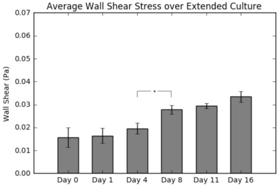 Wall shear stress distributions based on the day a construct was removed from culture and imaged.