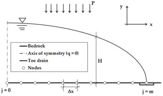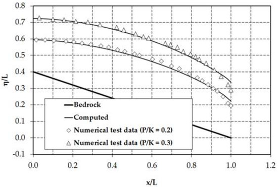 34] (p. 281). For the prescribed boundary conditions at the inflow section, this equation and Equation (17) are numerically coupled to simulate the profile of the phreatic surface. In this study, all computational results are presented graphically and are expressed in non-dimensional forms such as