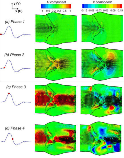3.1. Phase-Averaged Flow Patterns in a Typical Cardiac Cycle