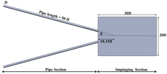 The planes where data were captured for the comparison are shown in Figure 6. The naming convention used by Landers [8] was followed in the current study. In the horizontal plane, the jet impingement occurs at angle 2θ to one another. The impingement point lies on the intersection of horizontal and vertical plane, at a distance of 10.33 D from the pipe exit. The line formed at the intersection of horizontal and vertical plane is termed as the center line.
