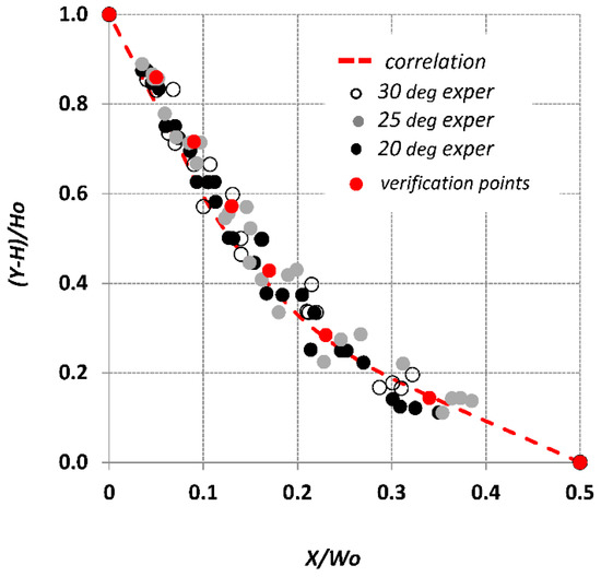 Comparison of the shape of the interface calculated by Equation (6) with relevant experimental data.