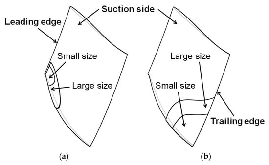 Table 1, where LECS and LECL indicate small (S) and large (L) sizes of leading edge cavitation, respectively, and TECS and TECL indicate small (S) and large (L) sizes of trailing edge cavitation, respectively.