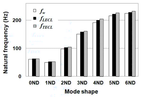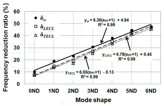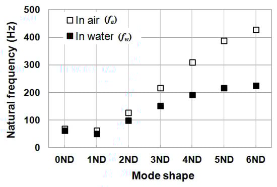 In order to quantitatively evaluate the added mass effects on the structures, the FRR of each mode either submerged in pure water (