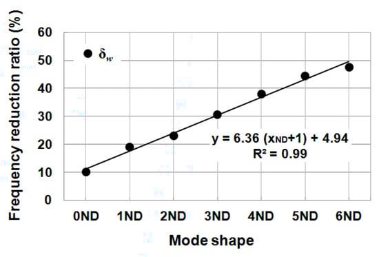 The frequency reduction ratio (FRR) of a vibration mode can be calculated relative to in-vacuum conditions as expressed with
