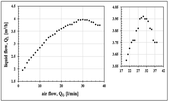 Evolution of the liquid flow as a function of the air flow.