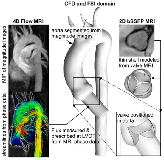 17]. However, the limitations of temporal and spatial resolution prevent MRI from visualizing blood flow patterns occurring immediately adjacent to the valve leaflets (especially in the sinus of Valsalva region), as well as close to the aortic wall downstream from the valve. Thus, MRI cannot precisely quantify WSS, and these are features ideally investigated using image-guided computational fluid dynamics (CFD) simulations [