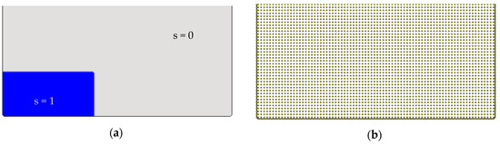 The front velocity of the flow, , is used to track the location of the saturation time within the porous medium by adopting a volume-of-fluids (VOF) approach [73] as in two-phase flows. Thus, the location of the saturation (phreatic) line, , at any time-level can be traced by a transport equation as: