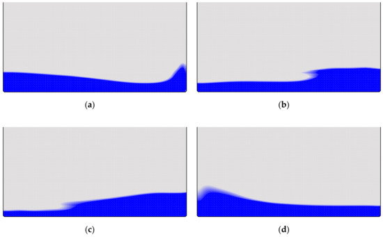 - Harlow, F.H.; Welch, J.E. Numerical Calculation of time dependent viscous incompressible flow of fluids with a free surface. Phys. Fluids 1965, 8, 2182–2189. [Google Scholar] [CrossRef]