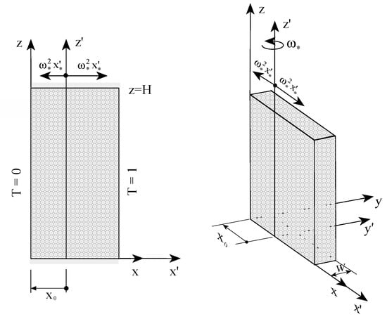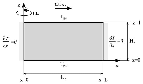 An analytical two-dimensional solution to this problem (see Figure 2) for a small aspect ratio of the domain was presented by Vadasz [3,4,34]. The solution to the non-linear set of partial differential equations was obtained through an asymptotic expansion of the dependent variables in terms of a small parameter representing the aspect ratio of the domain.