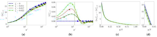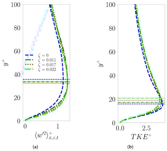 Figure 15a) through the viscous and buffer layers to ultimately peak closer to the surface (in the buffer–log transition). The location of peak vertical variance is illustrated in