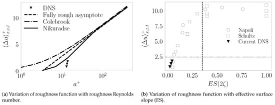 16], but exceptions do exist. Quantitatively, the roughness function represents the downward displacement in the mean velocity profile plotted in a semi-log scale indicative of the increased drag from the surface inhomogeneities. Combined with Townsend’s wall similarity hypothesis,