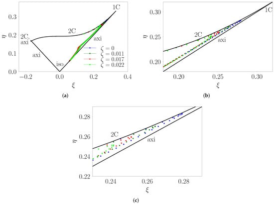 variables for a given flow are plotted along with a triangular region of realizability for the Reynolds stresses, popularly known as the Lumley triangle. The bounding curve in the first quadrant corresponds to one large positive eigenvalue and two small negative eigenvalues of