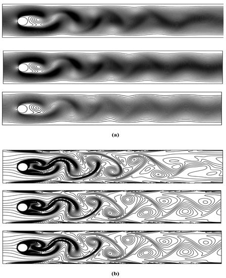 - Schäfer, M.; Turek, S.; Durst, F.; Krause, E.; Rannacher, R. Benchmark Computations of Laminar Flow Around a Cylinder. In Flow Simulation with High-Performance Computers II: DFG Priority Research Programme Results 1993–1995; Hirschel, E.H., Ed.; Vieweg+Teubner Verlag: Wiesbaden, Germany, 1996; pp. 547–566. [Google Scholar] [CrossRef]