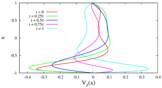 Figure 2 gives the dynamics in the velocity diagram of the base flow for the sequential times within the half-period of vibrations. The