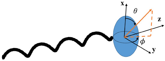 To numerically propagate the trajectory of the swimmer, we assume that at time zero the body basis is the same as the lab basis and hence the direction of the field in the lab basis is the same as its direction in the body basis. At every timestep, we use the magnetic field to calculate the magnetization in the soft magnetic model, the torque Equation (7) on the swimmer, and then the translational and angular velocity of the swimmer Equation (8). We rotate the field in the lab frame by its prescribed angular velocity; if the field corresponds to a steady solution, its angular velocity is given by Equation (15) in the body basis. We rotate the swimmer at its calculated angular velocity. We use the quaternion method [45] to compute the transfer matrix between the lab and body bases at each timestep.