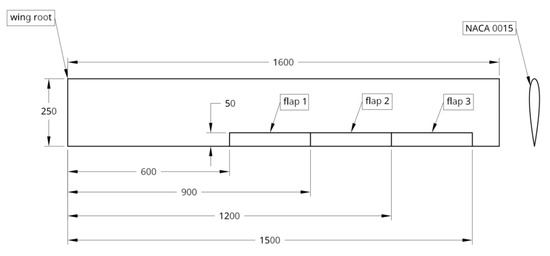 On the basis of the findings depicted in Section 2.1, and in particular in order to reduce modeling complexity while focusing on an adequate finite element and aerodynamic representation, a rather simple rectangular, non-swept wing layout was chosen over a complex shape, Figure 2. The span was set to the previously realized 1.6 m of the forward swept wing, representing a viable compromise amongst aspect ratio, wing flexibility, and the wind tunnel cross-sectional dimensions.