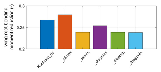 To identify which aeroelastic optimization objective would support most prominently the load alleviation controller, in total five objective functions were investigated in detail: