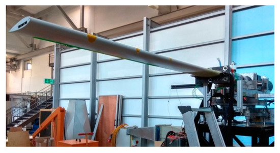 A forward swept wing featuring 1.6 m span and an average chord of 0.24 m was tested in the second test campaign [34], Figure 1b. For this wing, the objective function was also to maximize tip deflection, while being constrained to a maximum tip twist. Aeroelastic tailoring, in this case, allowed for a stiffness distribution suppressing the detrimental wash-in effect usually present in forward swept designs. Both wings were fully passive designs without trailing edge flaps or similar means.