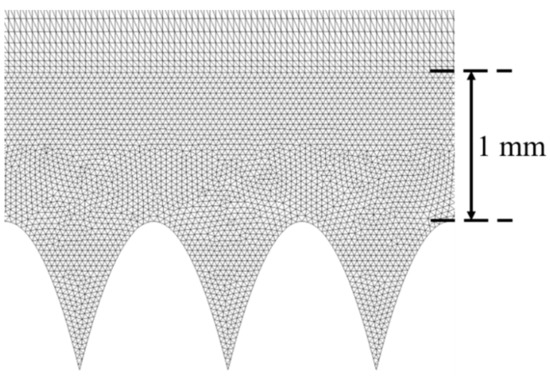 t is 300 µs. In this study, a maximum mesh size of 40 microns is used in a 1 mm thick layer above the surface as shown in