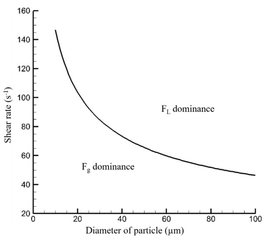 , can be calculated. The threshold shear rate for polystyrene particles of various diameters in water is given in