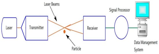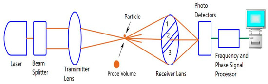 The phase Doppler anemometer (PDA), also known as a phase Doppler particle analyzer (PDPA), is an advanced version of an LDV, which is used to measure both the velocity and size of a droplet at the same time [99,100]. Figure 4 shows a schematic description of a PDA system.