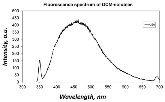 Fluorescence emission spectrum (λexc = 350 nm) of the DCM soluble particulate.