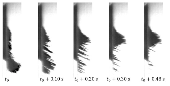 In several studies, a magnetic field was used to attract suspended particles. In Reference [10], a planar coil was used to accumulate suspended ferromagnetic particles on a microelectromechanical systems (MEMS) sensor, as a device to detect the appearance of ferromagnetic particles in liquid. In Reference [11], a high-gradient magnetic separation technique was used to capture weakly magnetic mineral particles. In three studies [12,13,14], the percentage of attracted particles was measured in order to rate the success of the attraction. However, the behaviour of the particles during the attraction was not investigated in the studies presented above. The behaviour of particles in a colloidal suspension called ferrofluid was investigated in References [15,16]. The ferrofluid was injected into a horizontal cell filled with colloidal silica and subsequently attracted to a sidewall using a magnetic field. In these studies, the particles did not settle because of the design of the experimental setup. In addition, an experimental method for measuring the pressure that ferrofluids apply on the sidewall was presented. The disadvantage of this method is that it is designed for static measurements of pressure and may not be suitable for dynamic measurements.