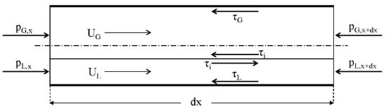 The interaction between the phases is represented by the interfacial shear stress , which is usually given by semi-empirical expressions involving the interfacial friction factor. In particular, according to Taitel and Dukler [17]