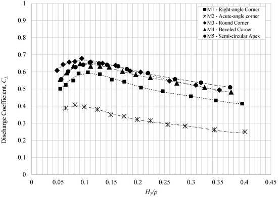 3.2. Effect of Corner Shape on the Discharge Coefficient