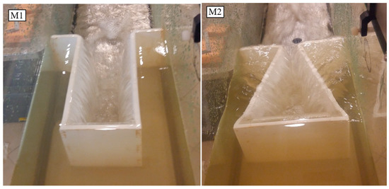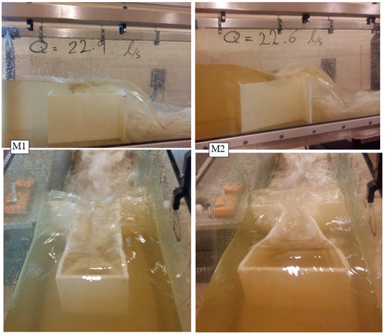Flow condition for M1 and M2 models; Q = 0.00375 m3/s for M1 model, and Q = 0.00365 m3/s for M2 model.