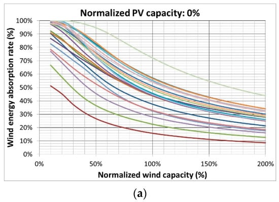 PV energy absorption rate for normalized PV capacity of 0% up to 200% (regardless of the wind capacity).