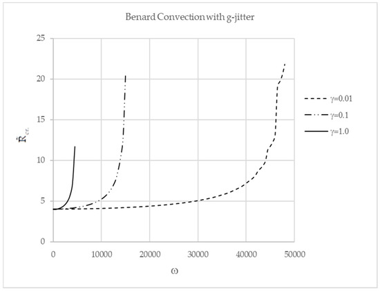 Figure 2 shows the critical Rayleigh number versus the vibration frequency for selected values of the scaled Vadasz number for case 3 when A = −0.5 (i.e., perfectly conducting and impermeable, cooled upper walls and heated lower walls). In