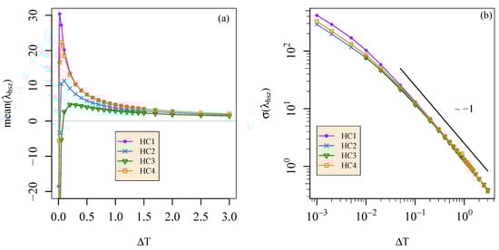 Mean (a) and standard deviation (b) of for simulations HC1, HC2, HC3, and HC4.