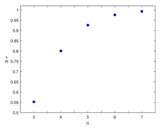 The coefficient b of the fastest acceleration wave, multiplied by the relaxation time is plotted as a function of n. The values were calculated in the previous sections and reported in the previous tables.