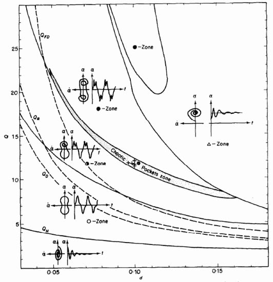 (Q, d) parameter plane with boundaries for different types of motion [1].