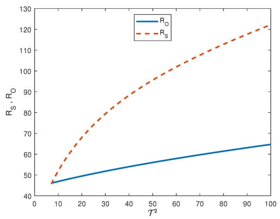 In order to determine the critical Rayleigh thermal number for the onset of oscillatory convection, say , then we substitute in (27), with i being the imaginary unit and . Subsequently, we take the real and imaginary parts of R, require the vanishing of the imaginary part of R, substitute into the real part of R, and determine the minimum—with respect to —of the obtained number. Setting