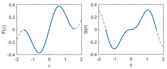 where the orientation vector components consist of a product of functions of and , respectively, so that the tensor can be written on the form . The double integral can therefore be separated into two integrals and are then functions of the flow field angles and and are therefore denoted and , respectively. The values for and are computed through numerical integration for a series of discrete values for and , respectively, covering all possible fibre directions. The angles then cover the interval , which may be interpreted from Figure 1. Then, Fourier series expansions are applied and fitted to and , respectively, on the form Nordling and Österman, (2006) [20]: