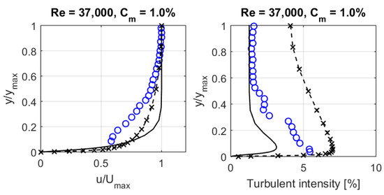 The experimental data in Claesson (2012) [24] were normalized with and were defined as the mean streamwise velocity at the step and at height. As a remark, the profiles were only plotted up to the height in the same way as the experimental profiles.