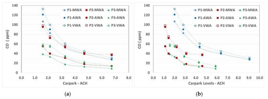 ACH effect on CO concentration based on: (a) All carpark, (b) Individual levels.