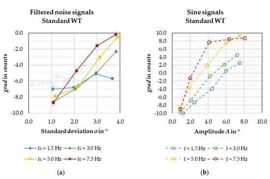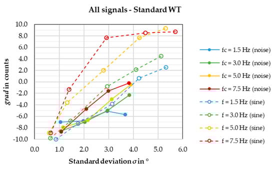 As previously mentioned, the sine signal’s amplitude can be converted to a standard deviation σ using Equation (1). This allows the depiction of the gradient results in a single diagram (Figure 8):