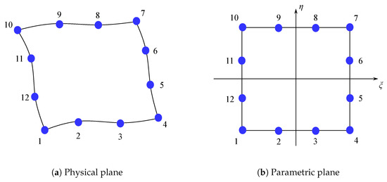Representation of 12-node cubic patch in physical plane and parametric plane.